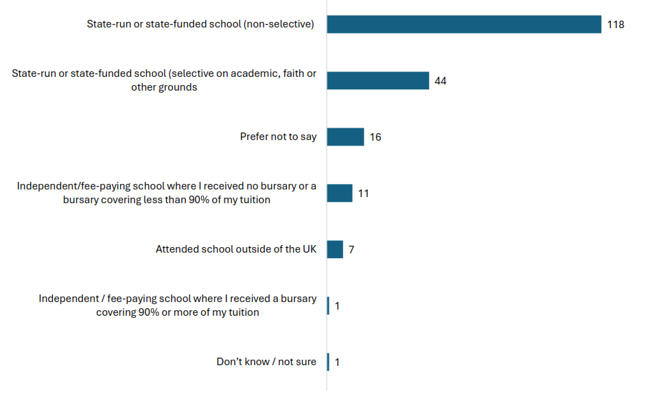 Which type of school did you attend for the most time between the ages 11 and 16?